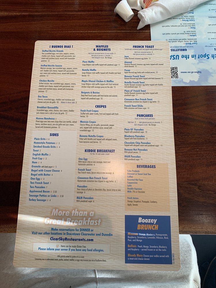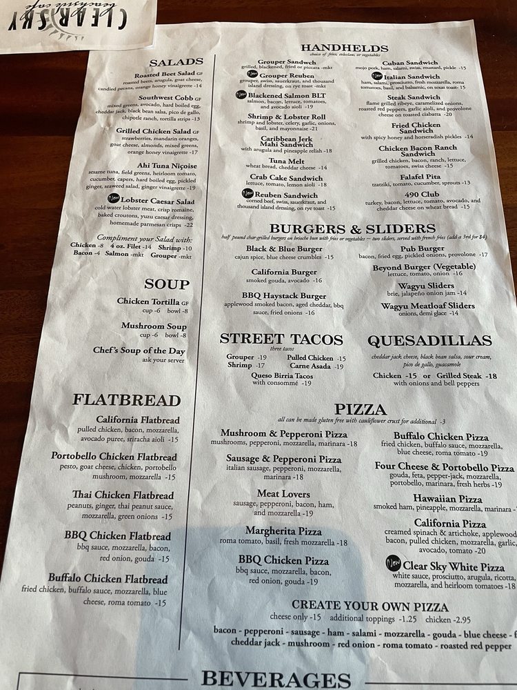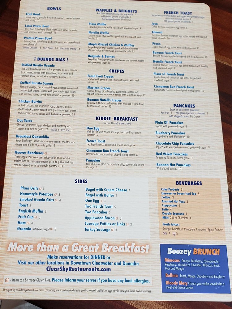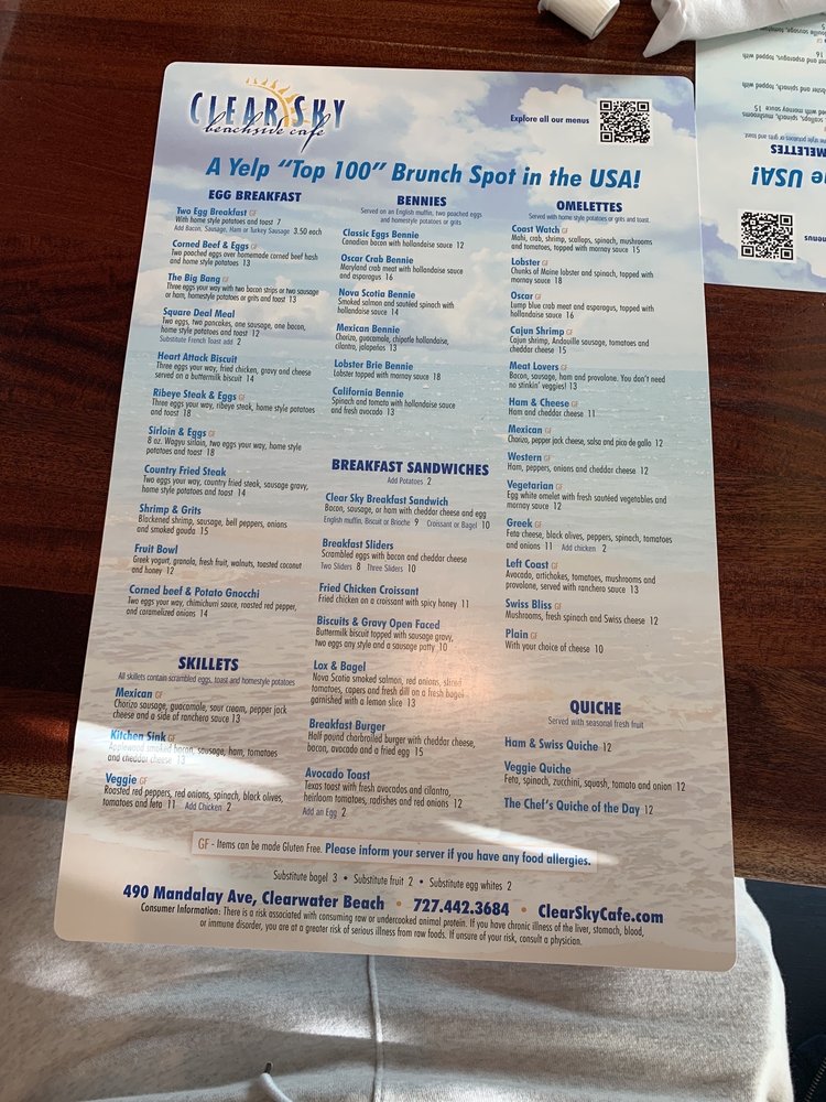 Clear Sky Cafe Menu (2025 Update)